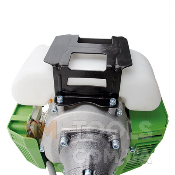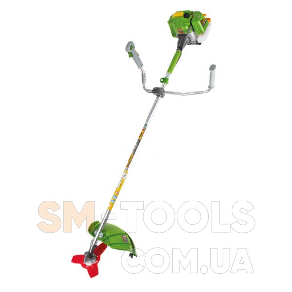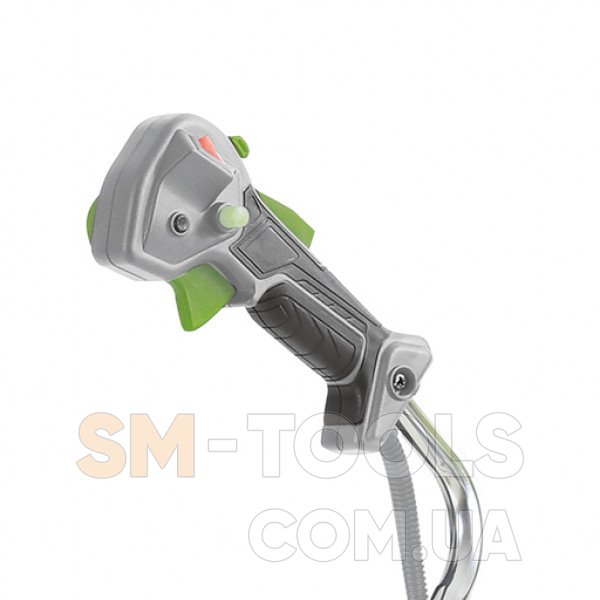 Бензотриммер оборудован эргономичной ручкой, на которой располагается кнопка управления и курок. При применении лески максимальная ширина рабочей поверхности – 41.5 см. Неразъемная штанга снижает уровень вибрации и увеличивает прочность прибора. Наличие удобного ремня позволяет минимизировать нагрузку на руки и позволяет работать с бензокосами длительное время.