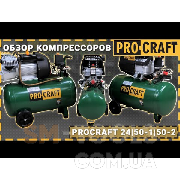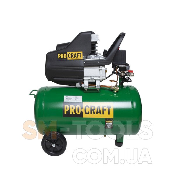 Компрессор ProCraft 50л - мощный высокопроизводительный агрегат, предназначенный для подачи сжатого воздуха на различные пневматические инструменты и оборудование.