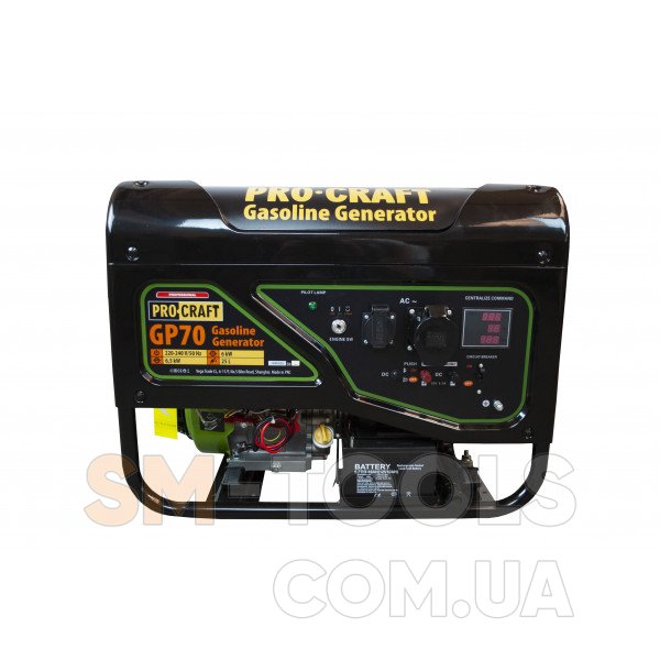 - Небольшая цена на бензиновый генератор Procraft GP70 – такие генераторы стоят дешевле, чем дизельные.