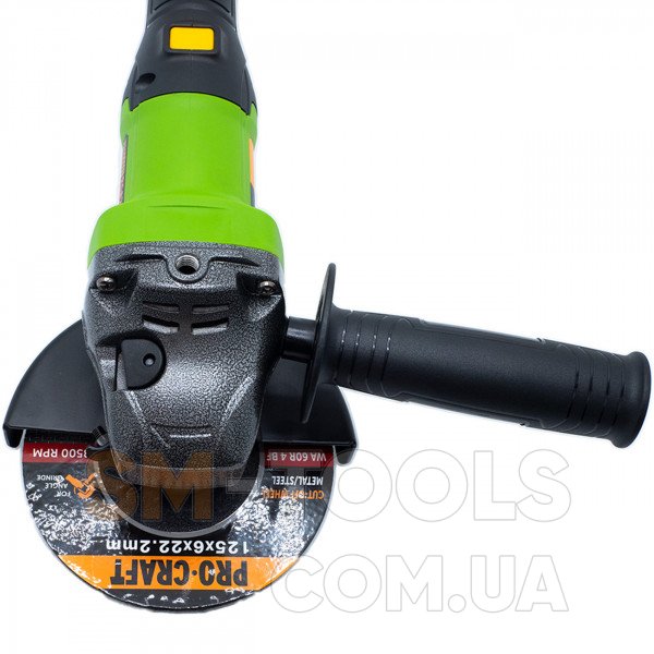 Аккумуляторная болгарка Procraft PGA20, купить которую вы можете на нашем сайте всего в несколько кликов, имеет специальный отрезной диск, диаметр которого составляет 125 мм. Также она имеет бесщеточный электрический двигатель, более надежный и более производительный, чем обычные электромоторы коллекторного типа. Следует также отметить, что максимальная скорость оборотов, выдаваемых двигателем, составляет 7500 в минуту. Скорость можно регулировать с помощью специального переключателя, расположенного на корпусе устройства.