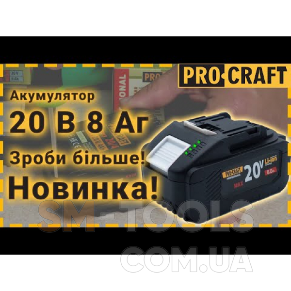 Аккумуляторная батарея Procraft Battery 20/8 8 Аг – это современный и универсальный аппарат, который используется для подзарядки аккумуляторных устройств Procraft с напряжением 20 В.
