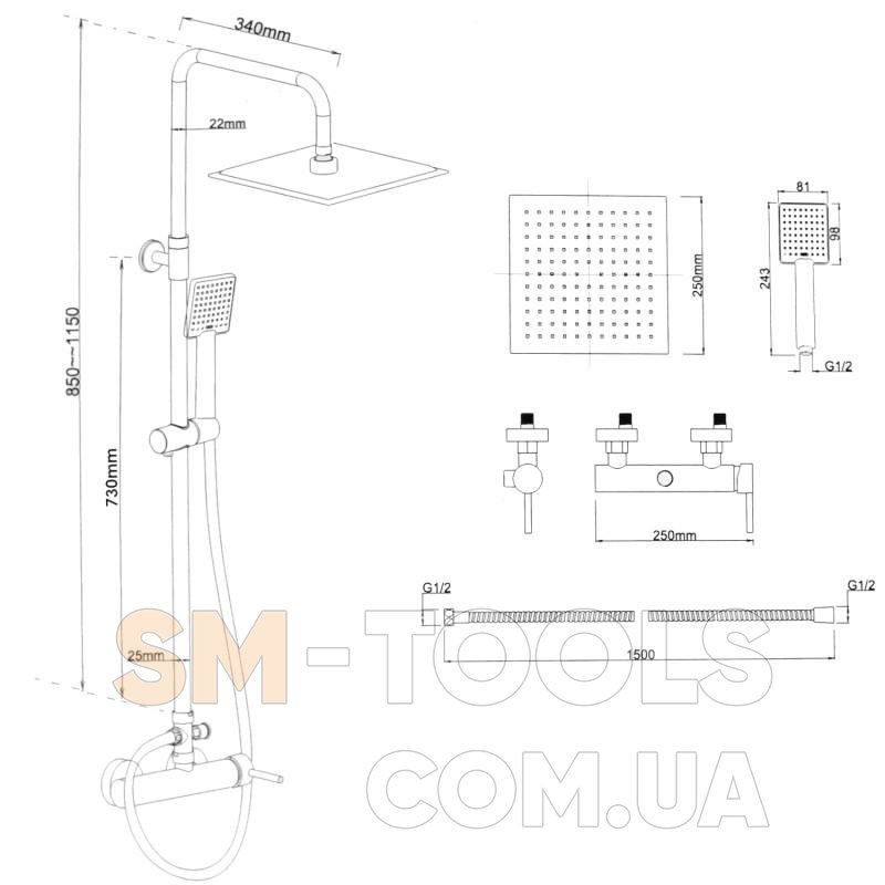 Описание Душевая система Yoka FLOVA 25 BLACK черный
