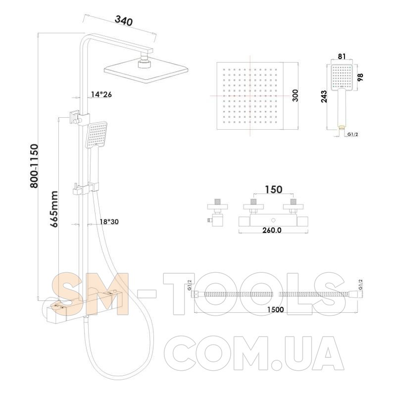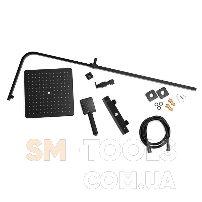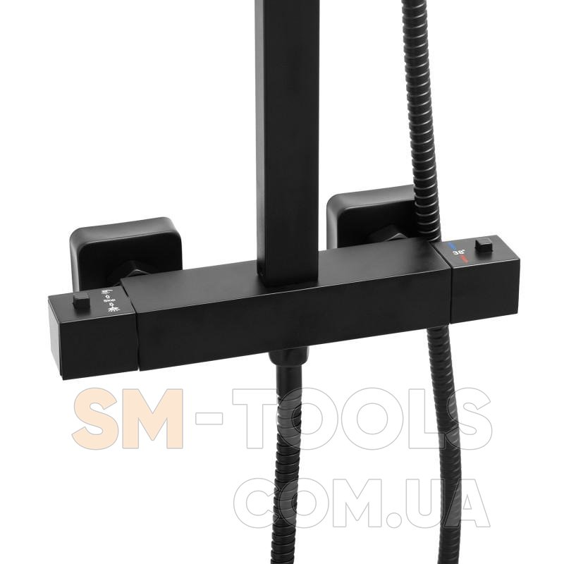 Современный, уникальный дизайн и исполнение из самых качественных, неагрессивных материалов обеспечивают долговечность и надежность нашей продукции на долгие годы. В комплект входит термостатический смеситель для душа со смесителем температуры, регулировкой и переключателем потока воды между тропическим душем и трубкой. Смеситель с функцией точной настройки температуры гарантирует высокий комфорт и безопасность пользования душем. Керамическая головка батареи (35 мм) гарантирует долговечность и прочность. В комплект входит широкий стильный тропический душ размером 30 х 30 см и душевая лейка черного матового цвета — оба с современной системой ANTI-CALC. Дизайн набора соответствует последним тенденциям – он выглядит очень элегантно и прекрасно вписывается в современную ванную комнату.Характеристики Душевая система Yoka CUBE 30 BLACK черный с термостатом
