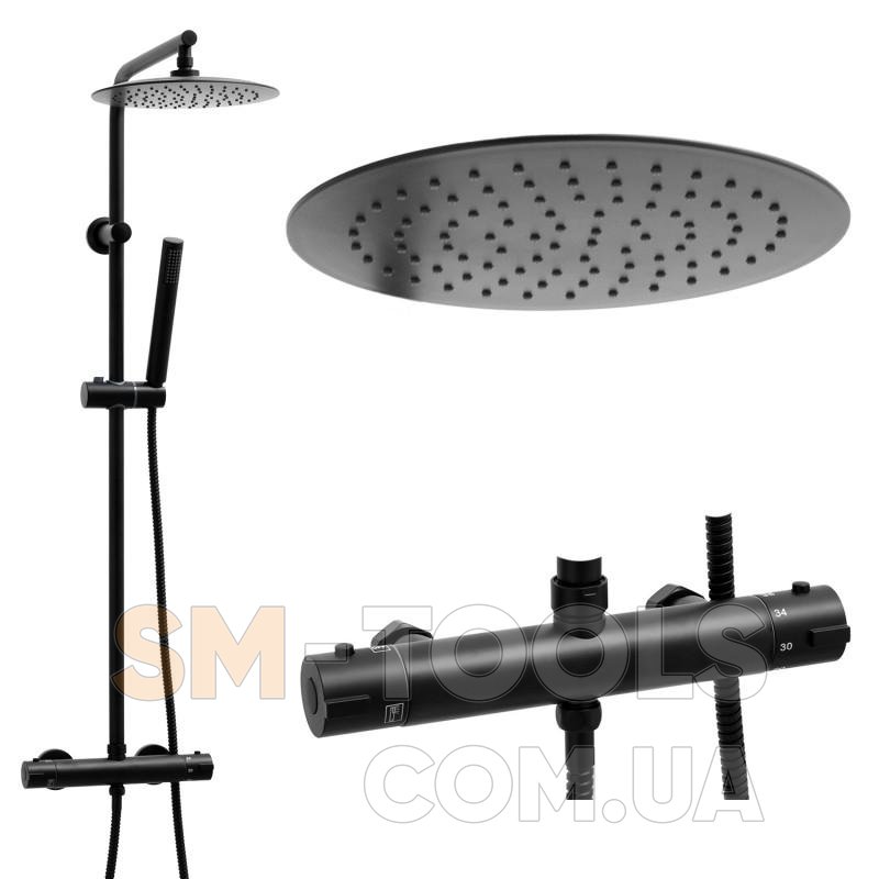 Душевая система Yoka FERRA 25 BLACK черный с термостатом