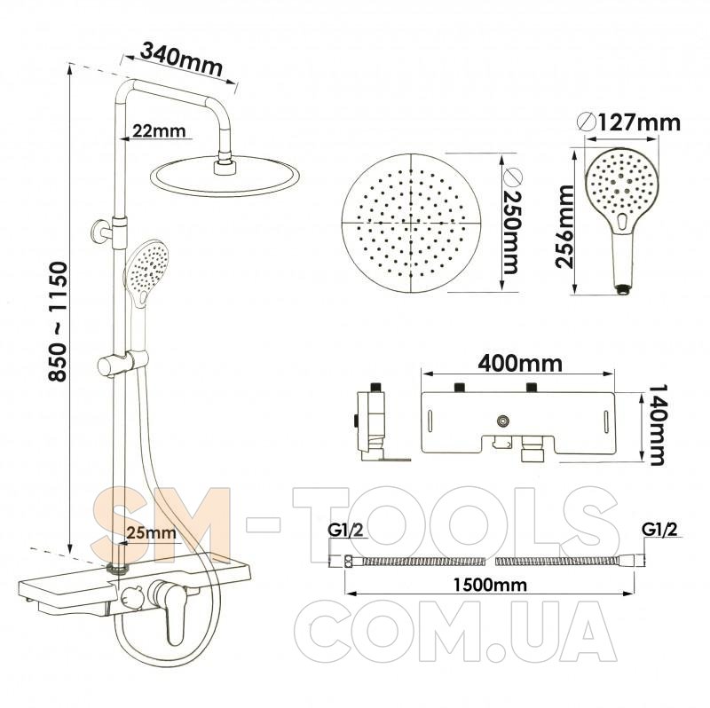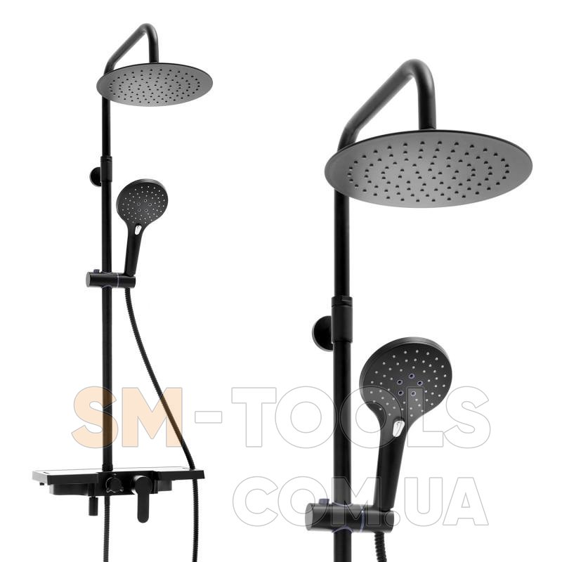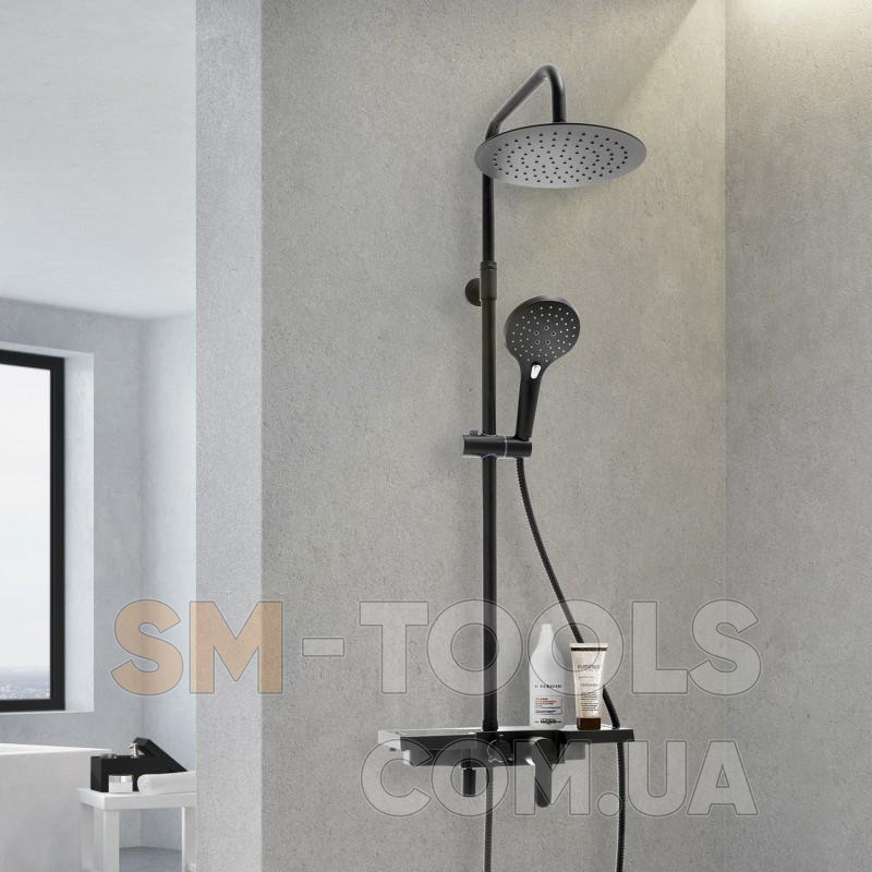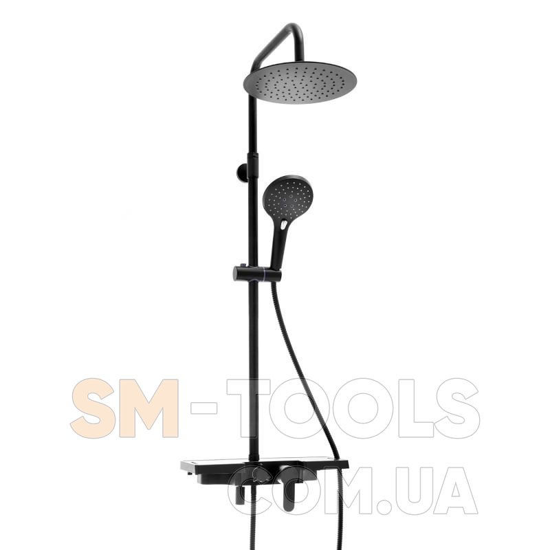 Описание Душевая система Yoka SABA 25 BLACK черный с полкой и краном