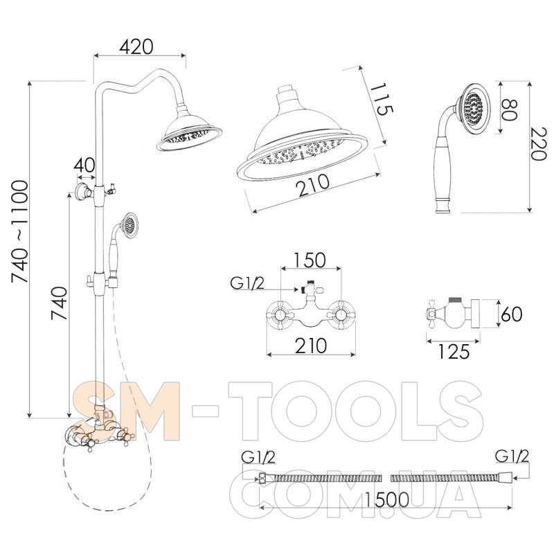 Представляем вам новую, исключительно элегантную и стильную модель от YOKA. Душевой набор с высококачественным двухрычажным смесителем. В комплект также входит стильный тропический душ диаметром 21 см и черная насадка для душа – обе в форме шапочки с современной системой ANTI-CALC. Краны в стиле ретро и переключение струи напорной воды между тропическим душем и телефонной трубкой придают ему оригинальный и необычный характер. Латунная головка батареи (35 мм) гарантирует долговечность и прочность. Дизайн смесителя вдохновлен 50-ми, 60-ми и 70-ми годами - он идеально подходит для ванной комнаты с элементами ушедшей эпохи. Продуманный дизайн и высочайшее качество изготовления, неагрессивные материалы обеспечивают долговечность и надежность нашей продукции на долгие годы.Характеристики Душевая система Yoka DIXI BLACK черный