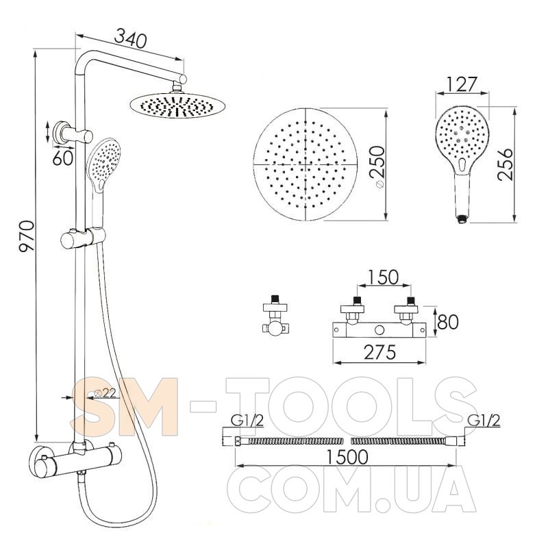 Описание Душевая система Yoka OMAN 25 THERM L.GOLD золотой