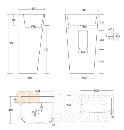 Описание Умывальник (раковина) CORSAN ARIS напольный белый