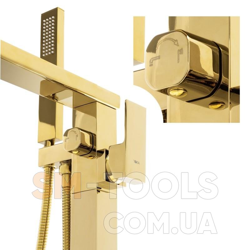 Современный, уникальный дизайн и исполнение из самых качественных, неагрессивных материалов обеспечивают долговечность и надежность нашей продукции на долгие годы. Новинка 2021 года. Механический отдельностоящий однорычажный смеситель для ванны и душа с фиксированным изливом с эффектом водопада. Керамическая головка (35 мм) гарантирует долговечность и прочность. В комплект входит душевая лейка с держателем. В набор входят все элементы, необходимые для сборки.Характеристики Смеситель для ванны Yoka ROMA GOLD золотой напольный