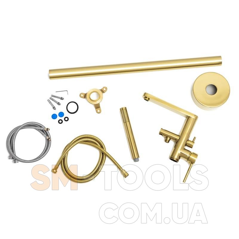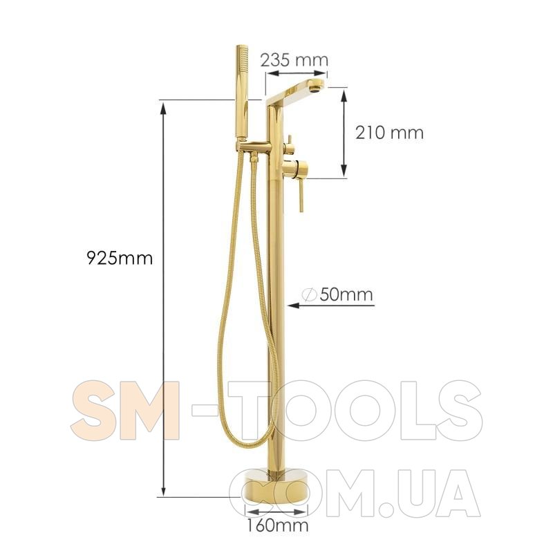Отдельностоящий механический однорычажный смеситель для ванны и душа с жестким поворотным изливом и переключателем. И керамическая головка диаметром 35 мм, и аэратор экономят до 40% воды. В комплект входят 2 высококачественных шланга из нержавеющей стали длиной 80 см с соединением 1/2 дюйма, 1 душевой шланг в оплетке 150 см F 1/2 и набор аксессуаров для установки смесителя. Дизайн смесителя соответствует последним тенденциям – он выглядит очень элегантно и прекрасно вписывается в современную ванную комнату. Современный дизайн и исполнение из самых качественных, неагрессивных материалов обеспечивают долговечность и надежность нашей продукции на долгие годы.Характеристики Смеситель для ванны Yoka CARLA GOLD золотой напольный