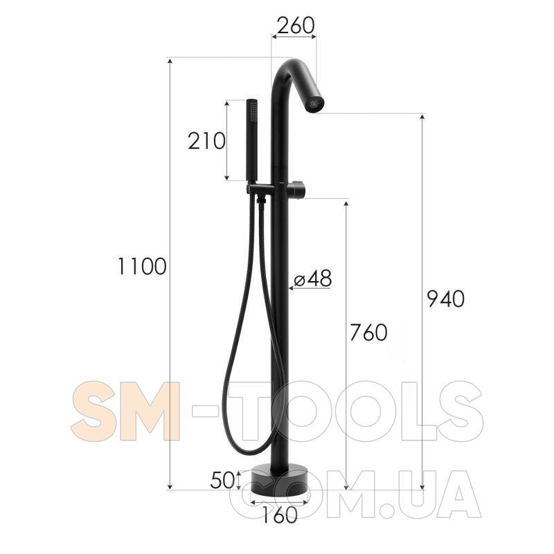 Современный, минималистичный дизайн и исполнение из высококачественных, неагрессивных материалов обеспечивают долговечность и надежность нашей продукции на долгие годы. Отдельностоящий механический однорычажный смеситель для ванны и душа с жестким поворотным изливом и переключателем. Переключатель излива/ручки имеет функцию одновременного смешивания воды (чем больше вы поворачиваете, тем горячее льется вода — регулировка давления невозможна). И керамическая головка диаметром 35 мм, и аэратор экономят до 40% воды. В комплект входят 2 высококачественных плетеных шланга из нержавеющей стали длиной 85 см с соединением 1/2 дюйма, 1 душевой шланг в оплетке 150 см F 1/2 и набор аксессуаров для установки смесителя. Дизайн смесителя соответствует последним тенденциям – он выглядит очень элегантно и прекрасно вписывается в современную ванную комнату.Характеристики Смеситель для ванны Yoka CABBA BLACK черный напольный