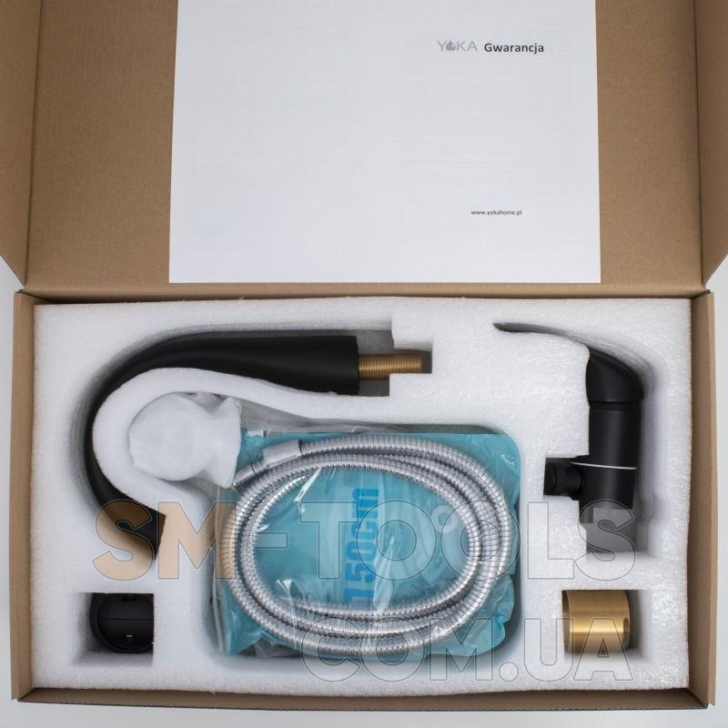 Современный набор включает в себя смеситель с напорным изливом/ручным душем, жесткий излив и душевой набор с ручным душем. В комплект входят 2 высококачественных шланга из нержавеющей стали длиной 50 см со стандартным соединением 3/8 дюйма и один с соединением 1/2 дюйма. Дизайн набора соответствует последним тенденциям – он выглядит очень элегантно и прекрасно вписывается в современную ванную комнату.Характеристики Смеситель для ванны Yoka SAMA 3 BLACK трехкомпонентный на борт ванны