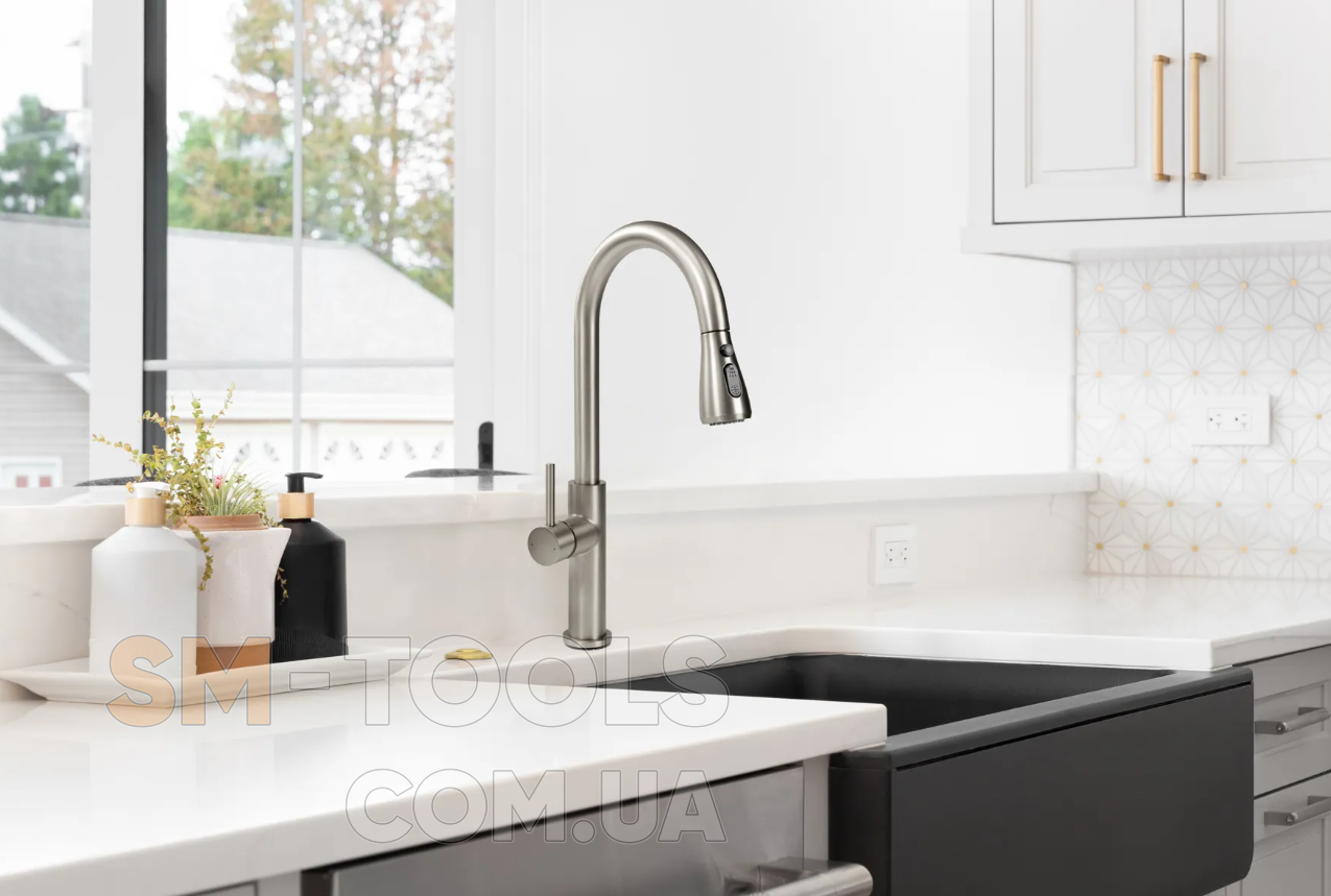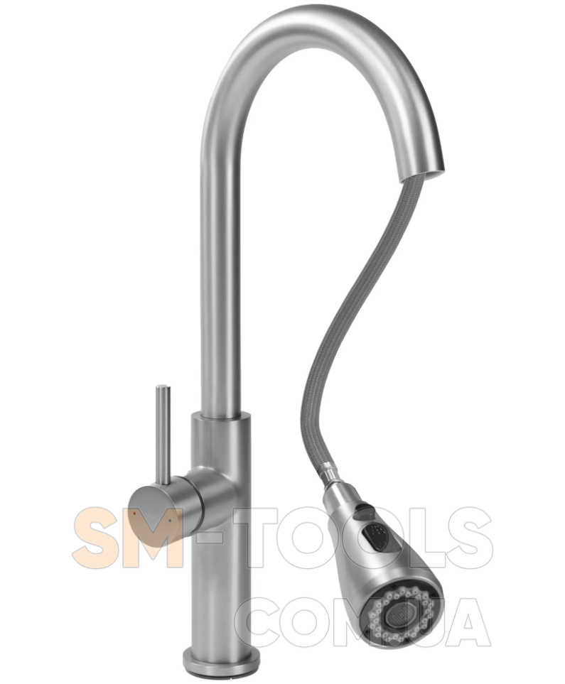 Основой любой функциональной кухни есть правильно подобранный кухонный смеситель. Латунный корпус – гарантия долговечности и стабильности. Матовая поверхность – последний тренд. Он придает смесителю, кроме необычного внешнего вида, стойкость к царапинам и загрязнениям. Долговременная надежность гарантируется использованием керамической головки. Выдвижной носик позволяет направлять струю в любое место. На кончике носика имеется переключатель, позволяющий выбирать между рассеянным и сфокусированным потоком.Характеристики Смеситель для кухни REA NEST NIKIEL BRUSHED