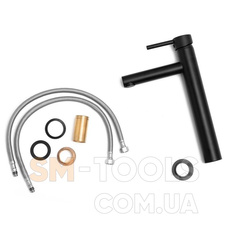 Неоспоримым преимуществом - является очень длинный излив со встроенным аэратором, который позволит вам экономить до 40% воды. Керамический картридж, диаметром 25 мм гарантирует комфортную работу устройства и позволит эффективно использовать смеситель. В комплект входят 2 высококачественных шланга из нержавеющей стали длиной 50 см со стандартным соединением 3/8 дюйма и набор аксессуаров для крепления. Дизайн смесителя соответствует последним тенденциям – он выглядит очень элегантно и прекрасно вписывается в современную ванную комнату.Характеристики Смеситель для раковины (умывальника) Yoka HOST 36 BLACK черний высокий