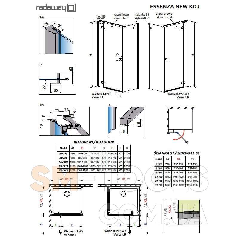 Описание душевая стенка Radaway Essenza New Black KDJ/KDJ+S 75x200 стекло прозрачное (384049-54-01)