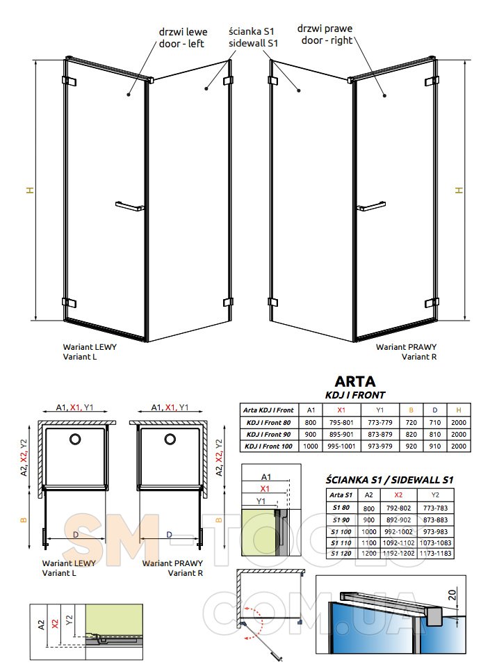Описание душевая дверь Radaway Arta KDJ I 100x200 стекло прозрачное левая (386083-03-01L)