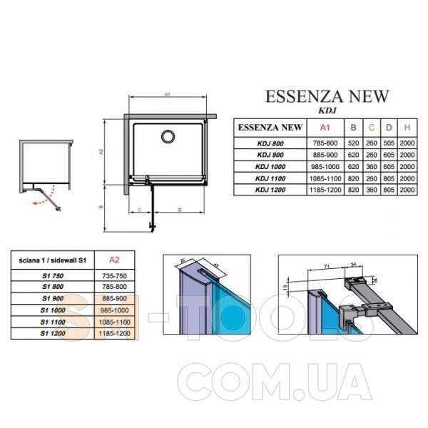 Описание душевая дверь Radaway Essenza New KDJ 90x200 стекло прозрачное правая (385044-01-01R)