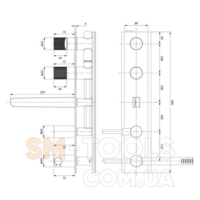 Описание смеситель для ванны и душа Omnires Contour скрытого монтажа, chrome (CT8037/1CR)