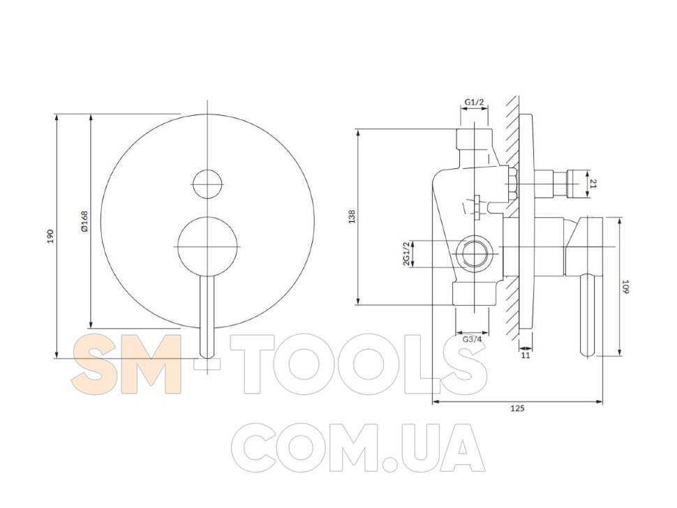 смеситель для ванны и душа скрытого монтажа Omnires Y chrome (Y1235CR)