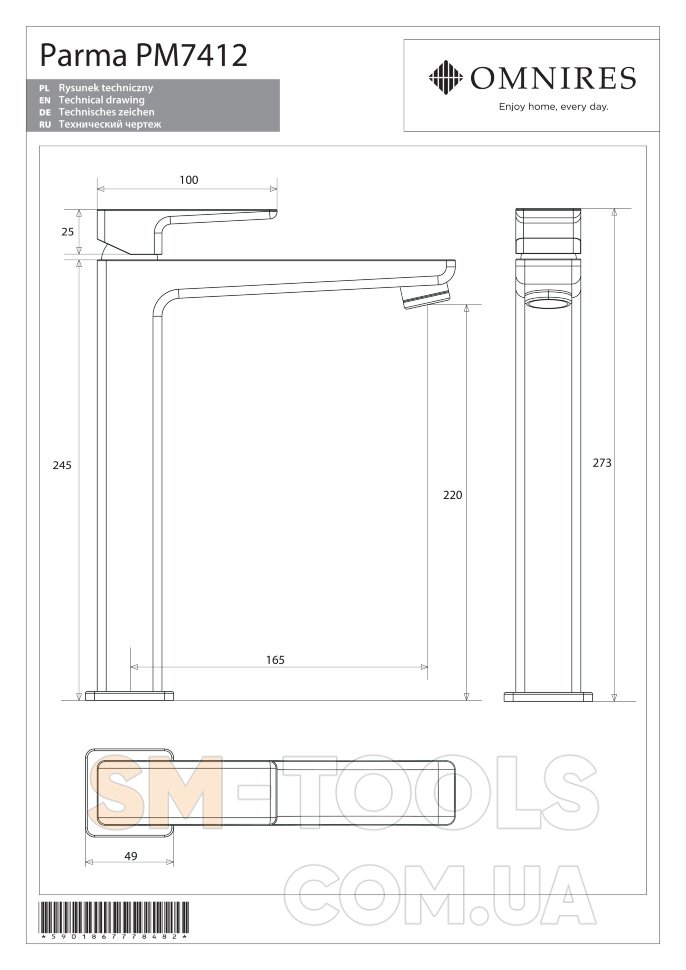 Описание смеситель для умывальника Omnires Parma black mat, высокий (PM7412BL)