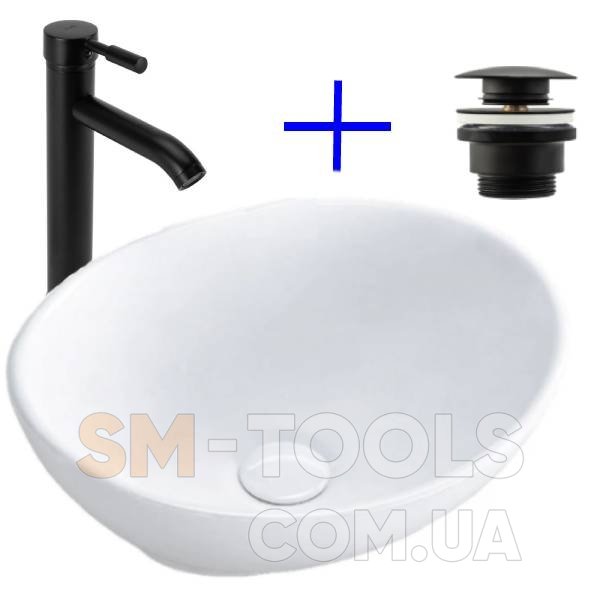 комплект умывальник Rea Sofia 27x34 + смеситель Graf черный + донный клапан клик-клак (REA-U0623+REA-B8665+REA-A5216)