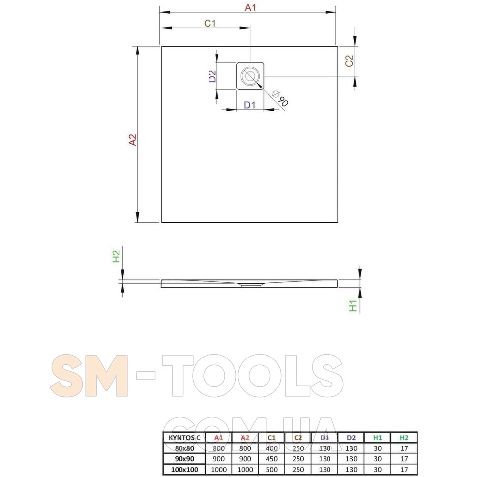 Описание поддон Radaway Kyntos C 80x80 квадратный, антрацит (HKC8080-64)