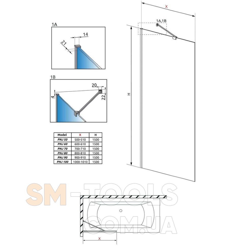 Описание штора для ванны Radaway Modo PNJ 70 безопасное стекло, прозрачное, чёрная (10006070-54-01)