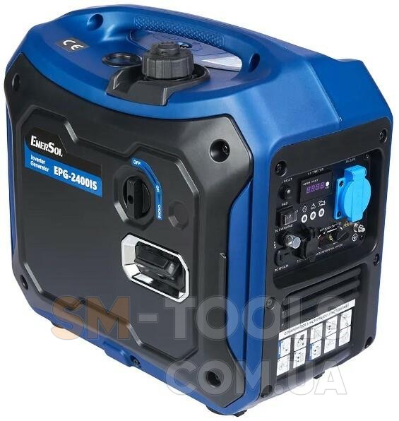 При максимальному навантаженні потужність може досягати 2200 Вт. Переваги EnerSol EPG-2400IS Легкий компактний генератор для невеликих програм Зручність транспортування завдяки вбудованій ручці для перенесення Закритий корпус забезпечує відмінну звукоізоляцію. Ідеально підходить для використання в саду, кемпінгу та на відкритому повітрі. Розетка 220 В для підключення електронних пристроїв Інверторна технологія запобігає коливанням напруги, що дозволяє підключати чутливі пристрої, такі як комп'ютери, телевізори та системи Hi-Fi. Генератор бензиновий інверторний EnerSol EPG-2400IS Інверторний генератор є невеликою портативною моделлю для домашнього використання.