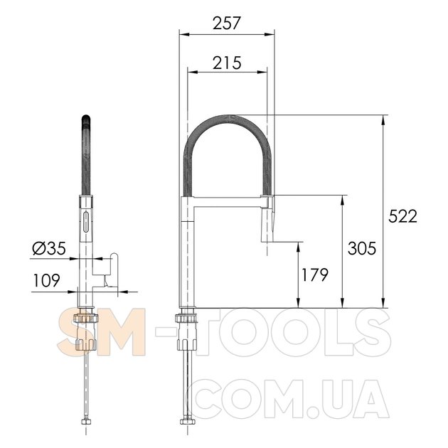 Высота смесителя, мм - 522