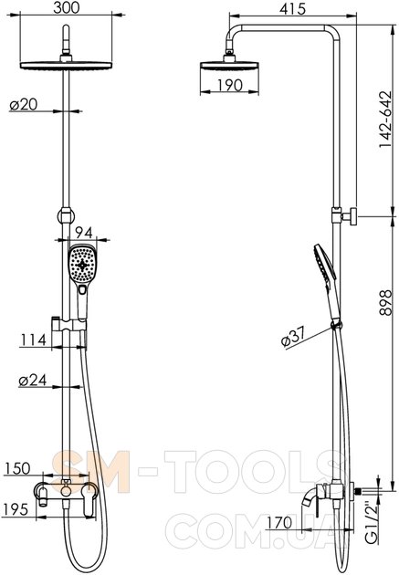 Размер верхенго душа, мм - 300х190