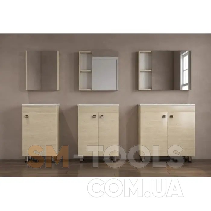 - Комплектация: зеркальный шкаф, тумба с раковиной