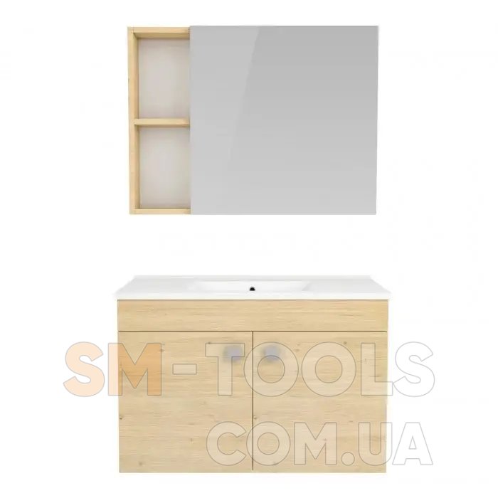 - Комплектация: тумба с раковиной, зеркальный шкаф