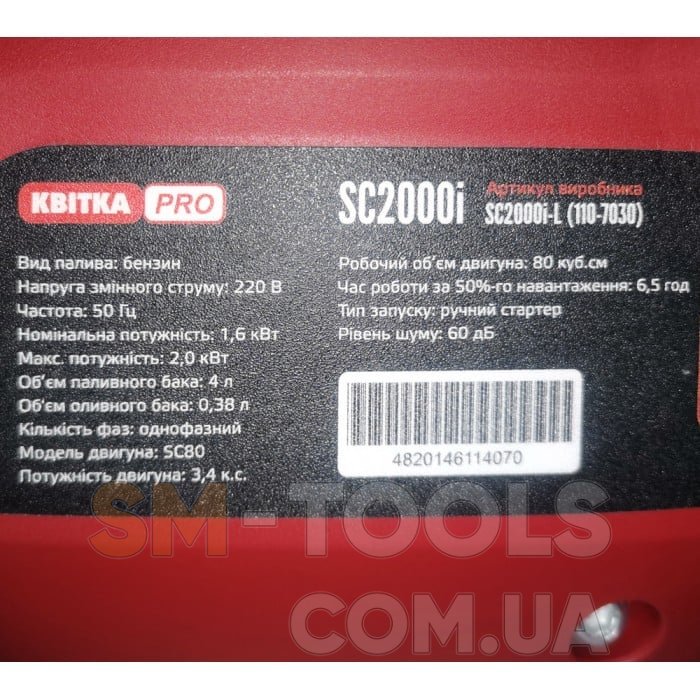 Описание Инверторный бензиновый генератор КВІТКА PRO SC2000i (2 кВт) (110-7030)