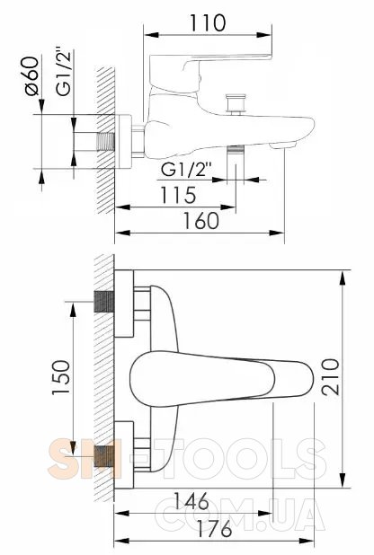 Длина излива, мм 176