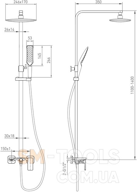 Ширина лейки верхнего душа, мм: 246