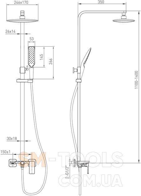 Ширина лейки верхнего душа, мм: 246