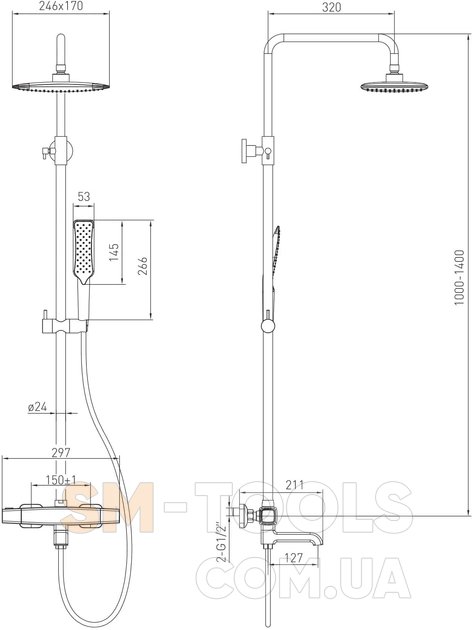 Ширина лейки верхнего душа, мм: 246