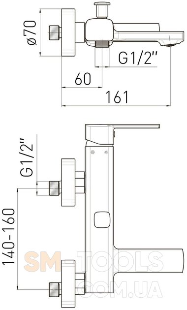 Длина излива, мм : 161