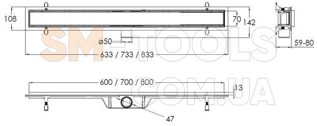 Характеристики Душевой трап Volle 600 мм 9000.200604: