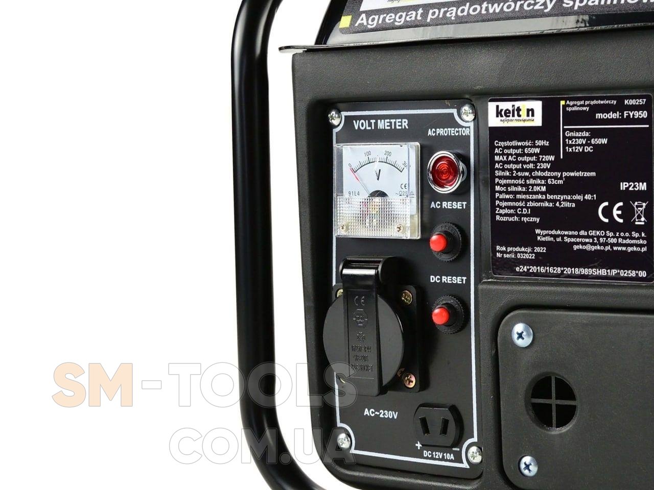 Бензиновий генератор Keltin K00257 - виготовлений з використанням високоякісних комплектуючих і матеріалів. Двигун дозволяє отримати максимальну потужність 720 Вт і постійну потужність 650 Вт, при середньому навантаженні пристрій може працювати до 6 годин на одному паливному баку.