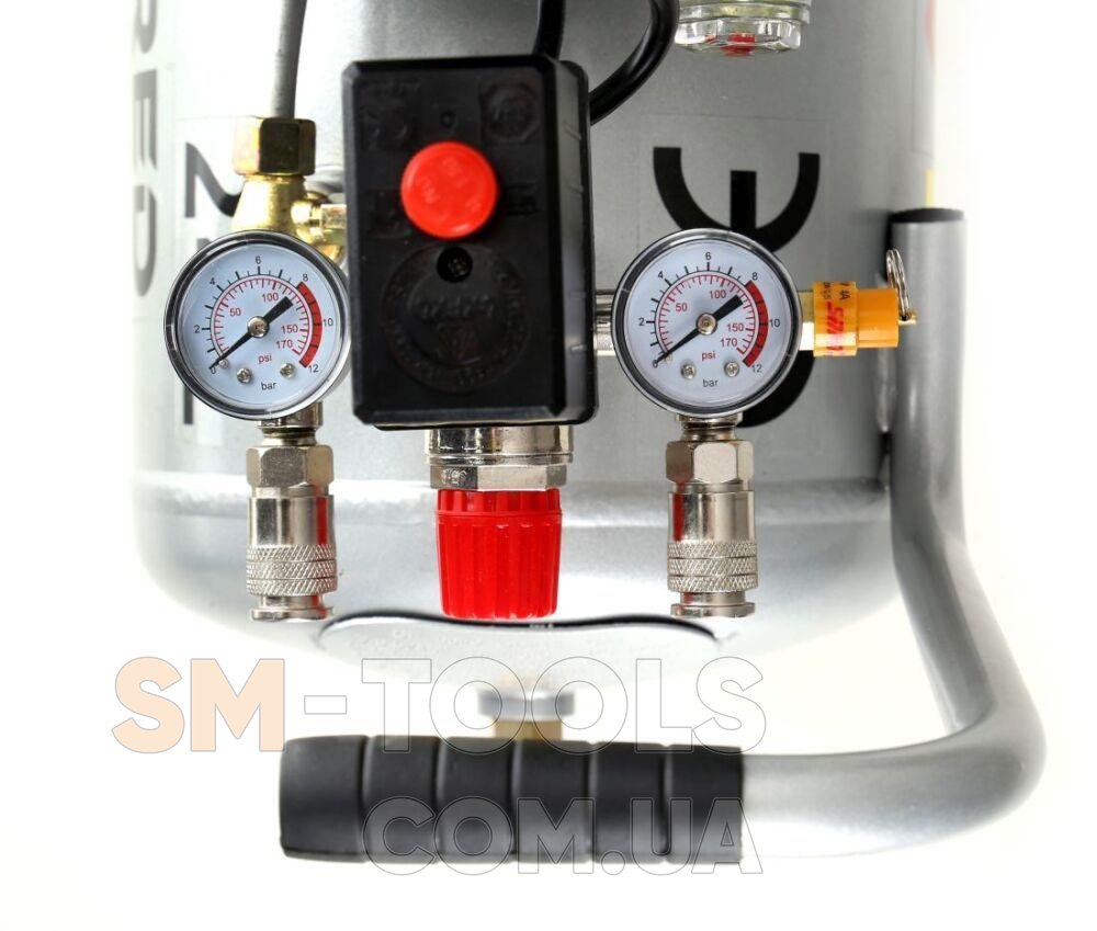 Невелика вага компресора робить його дуже ергономічним, він також має автоматичну систему змащення, фільтрацію повітря, редуктор тиску та транспортні колеса.