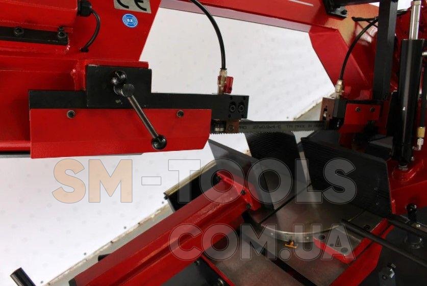 - Твердосплавні напрямні роликові опори пильного полотна, що забезпечує жорсткість і довговічність пилкового вузла;