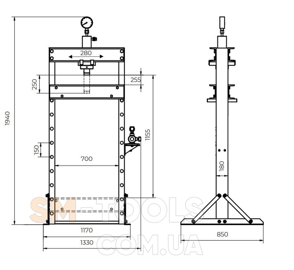Прес гідравлічний Holzmann WP75ECO - має оригінальну зварену конструкцію c вертикальним розташуванням преса, відрізняється простотою, має гарну жорсткість та стійкість за рахунок додаткових ребер жорсткості і якості виготовлення.