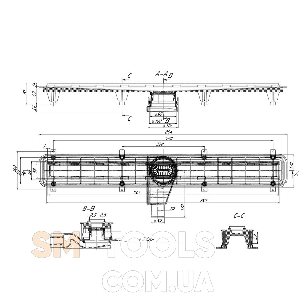 Комплектация декоративная решетка, гидроизоляционная полоска, сифон