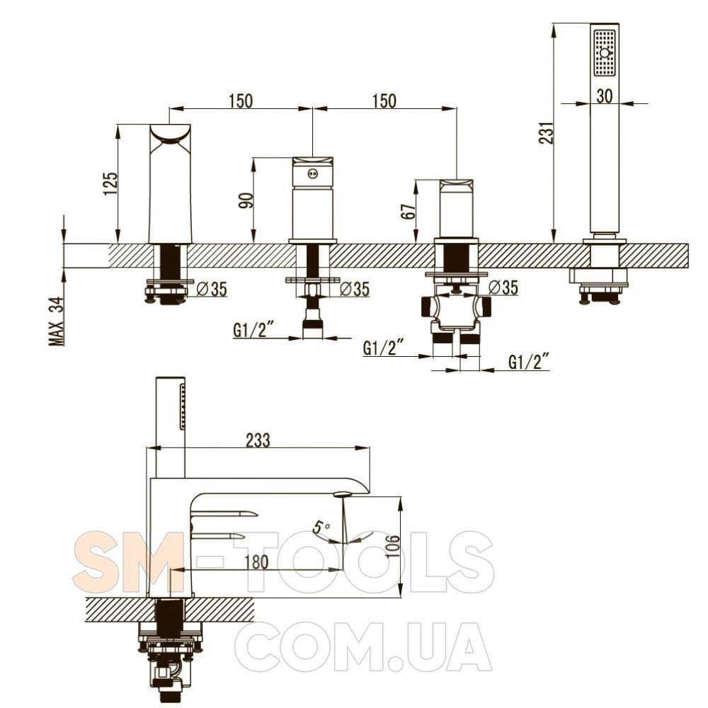 Характеристики Смеситель для ванны Devit Iven 43128141: