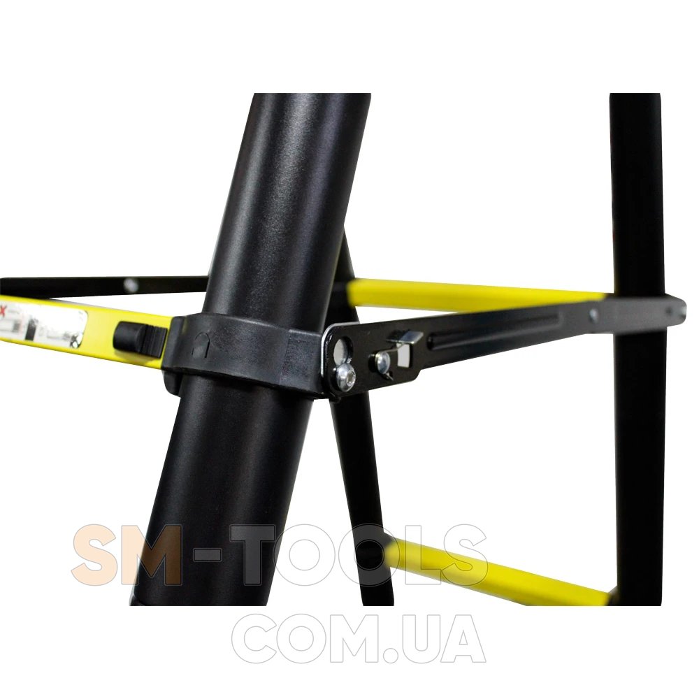 - Лестница сделана из алюминия, что обеспечивает ее легкость по сравнению с деревянными или железными аналогами
