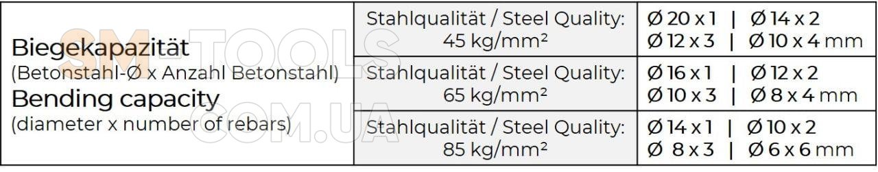 Способность на гибку в зависимости от качества стали согласно таблице.