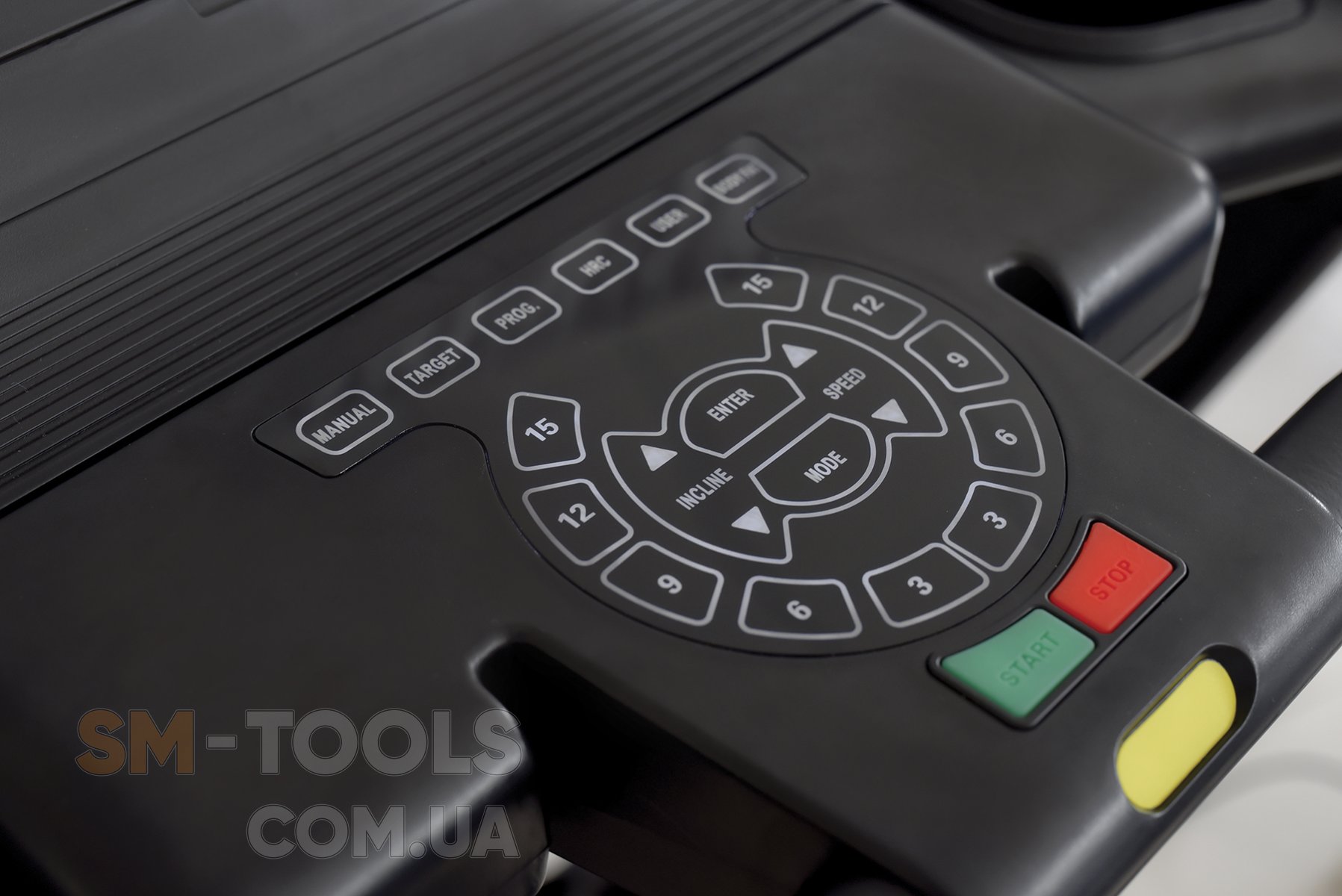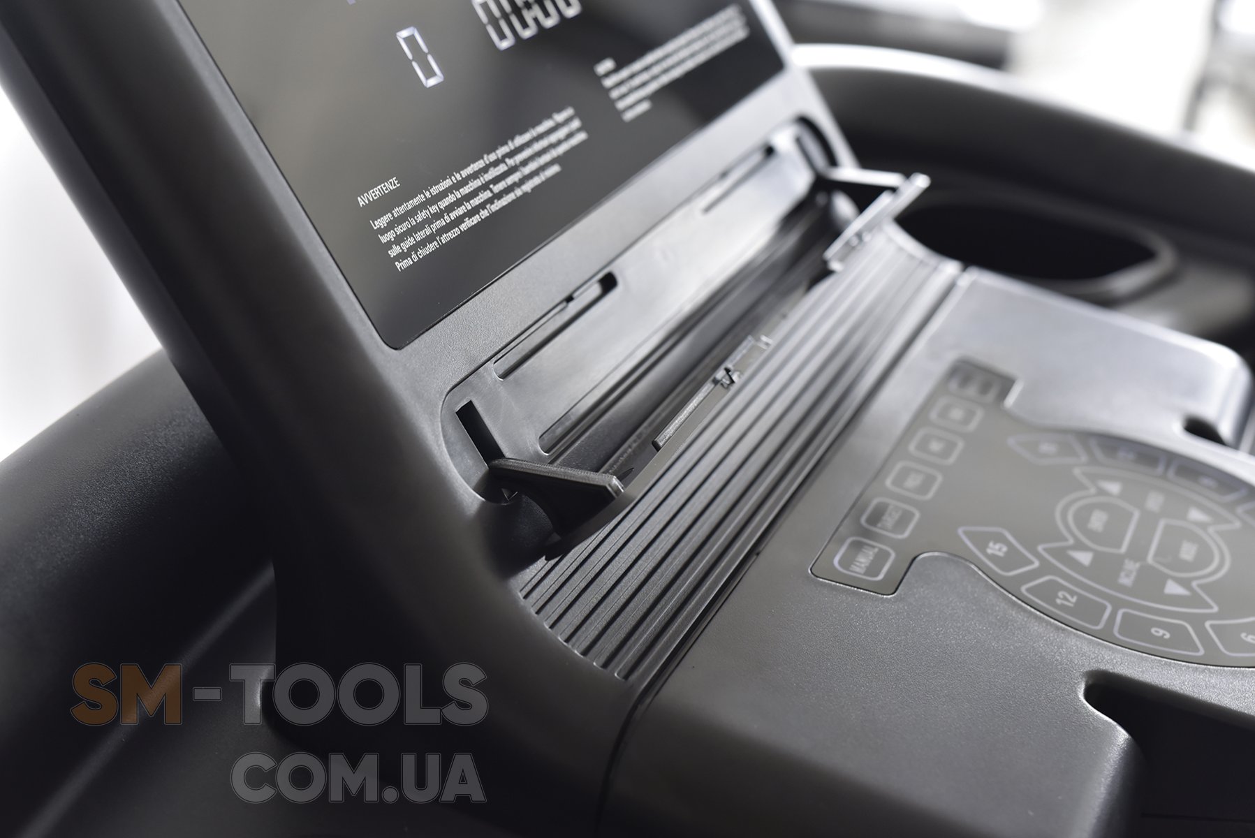 - Кнопки регулировки скоростью/наклоном также расположены на поручнях.