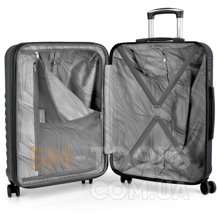 Корпус чемоданов| который имеет повышенную ударостойкость и упругость, что очень важно для чемоданов, перевозимых в багажных отделениях. Уникальный дизайн чемодана поможет легче идентифицировать его среди других, чтобы избежать путаницы с багажом. Внутреннее пространство разделено перегородкой на два отделения с ремнями для фиксации вещей внутри. Модель имеет функцию расширения, позволяющую при необходимости увеличить объем чемодана до 78 литров. Чемодан Gabol Journey (M) Grey (122846-016) оснащен четырьмя сдвоенными колесами с возможностью независимого разворота. на 360°. Конструкцией предусмотрено равномерное распределение нагрузки на каждое колесо, что в свою очередь способствует плавному движению и маневренности чемодана, прилагая при этом минимум усилий. Колеса изготовлены из высокотемпературного термопластического полиуретана (TPU). Данный материал имеет прочность сравнимую с пластиком, гибкость силикона, а также повышенную устойчивость к перепадам температуры. Отличительной особенностью колес из TPU является снижение шума до минимума при движении чемодана. Благодаря устойчивости к истиранию, материал колес отличается длительным сроком эксплуатации. of Chemicals) - Регламент Европейского сообщества по регистрации, оценке, авторизации и ограничению производства и использования химических веществ.