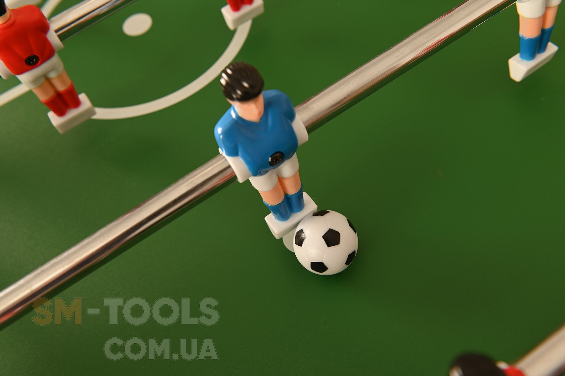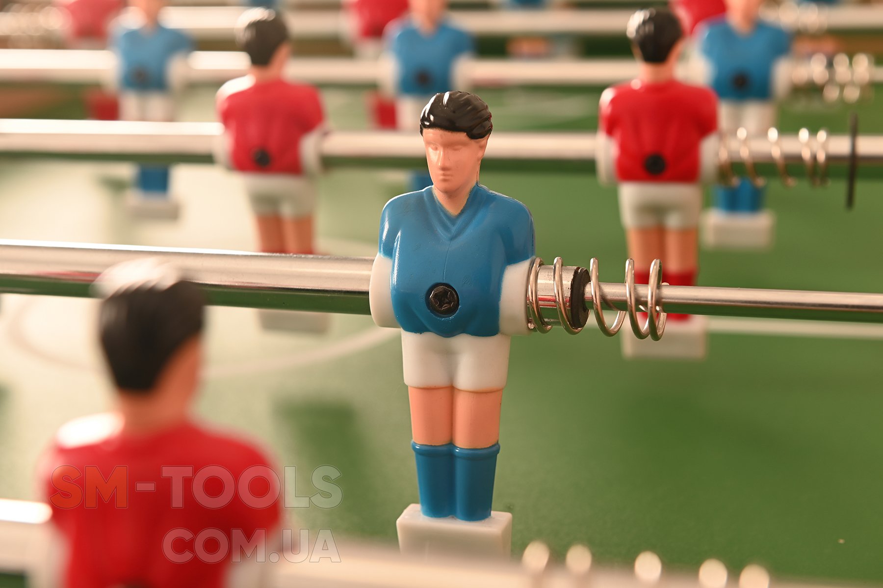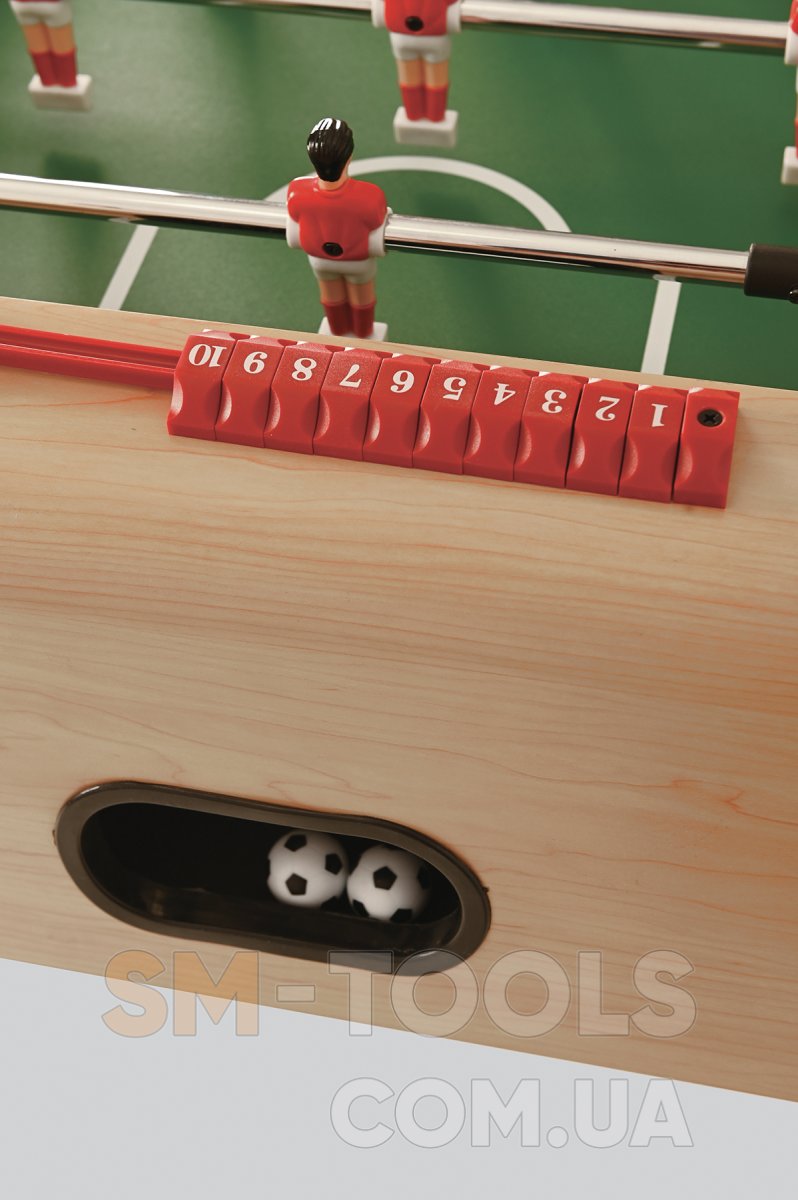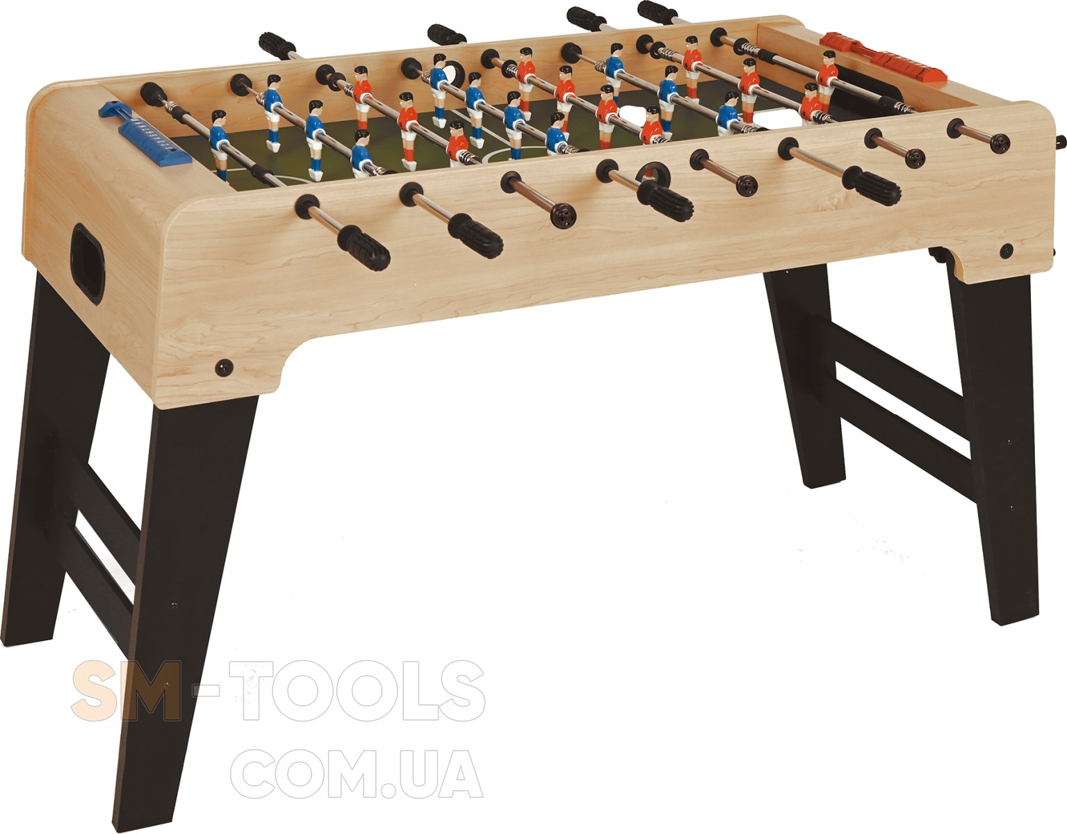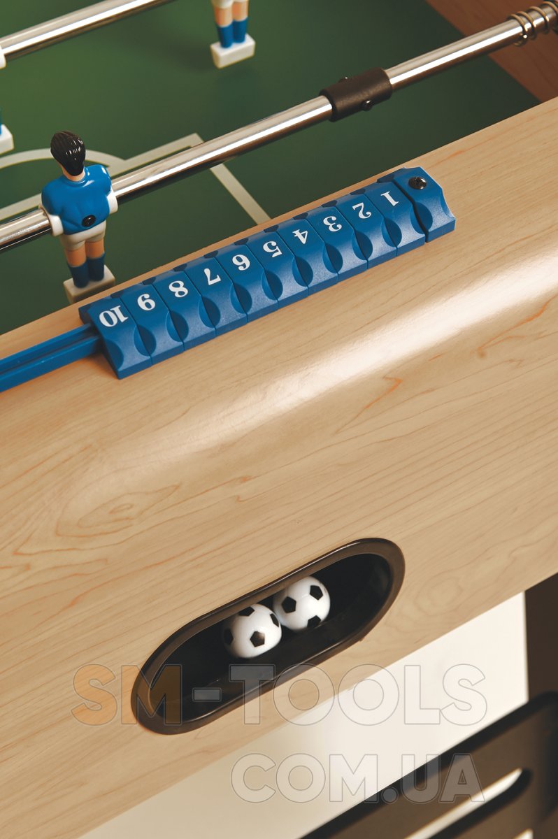 Ножки стола можно легко сложить, а четыре резиновые торцевые накладки позволяют столу опираться на пол, находясь в вертикальном положении. Игровое поле из МДФ с меламиновым покрытием. Особый эффект травы создает впечатление игры на футбольном поле. Трубчатые сквозные штанги Ø13 мм и толщиной 1 мм. Концы штанг закрыты пластиковыми заглушками для безопасности. li>Легко забивать голы, благодаря полностью вращающемуся вратарю и особой схеме игроков: 1 вратарь - 3 защитника - 4 полузащитника - 3 нападающих. Фигурки игроков красного и синего цвета закреплены на штангах индивидуально. Быстрое и легкое извлечение мяча после гола через отсек за воротами. Наглядный подсчет голов и очков, реализуемый с помощью механических счетчиков. У комплекте 2 черно-белых мячей. Упаковка с прочной защитой внутри коробки, чтобы предотвратить повреждение стола во время транспортировки. Характеристики Настольный футбол Garlando F-3 Foldy Maplewood (F3ACULNOFOLDY)